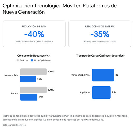Para los usuarios que enfrentan limitaciones severas de hardware o que operan bajo conectividad celular inestable (como redes 3G en zonas remotas), la versión de aplicación web progresiva (PWA) permite cargas iniciales completas del entorno en apenas 3 segundos, ocupando 0MB de almacenamiento permanente en el dispositivo. Además, los jugadores tienen la facultad de activar el revolucionario “Modo Turbo” desde el panel de configuraciones móviles. Esta herramienta exclusiva reduce de manera drástica el consumo de memoria RAM en un 40% y mitiga el desgaste de la batería en un 35%.